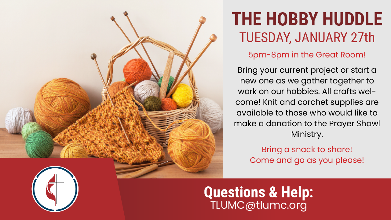 All crafts welcome, and knit/crochet supplies are available if you would like to contribute to our prayer shawl ministry!